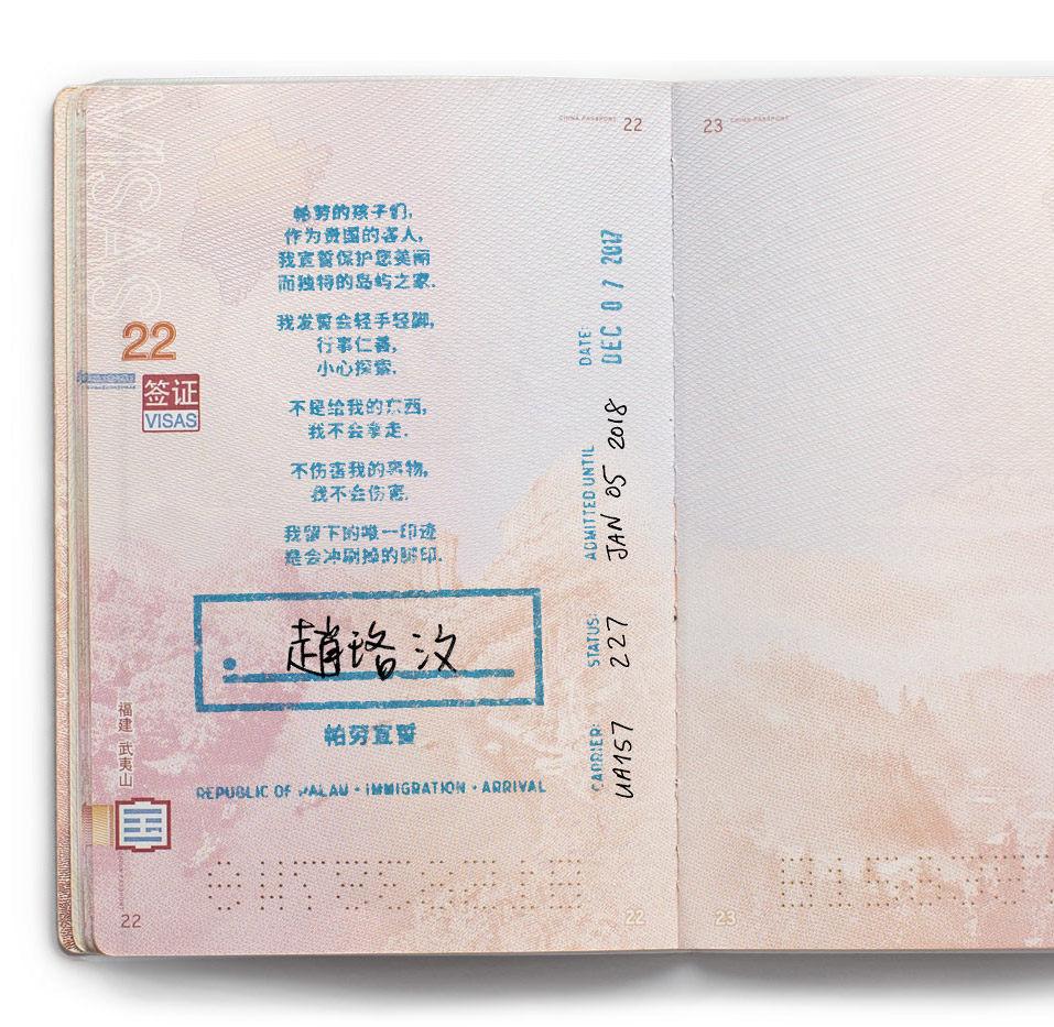 帛琉是個極度重視環境保育的國家,因此才能一直保有如此美景。到帛琉旅遊的遊客,必須於護照內頁蓋上「帛琉誓詞」入境章戳的欄位上簽名,表示願意共同維護當地生態,才能入境。