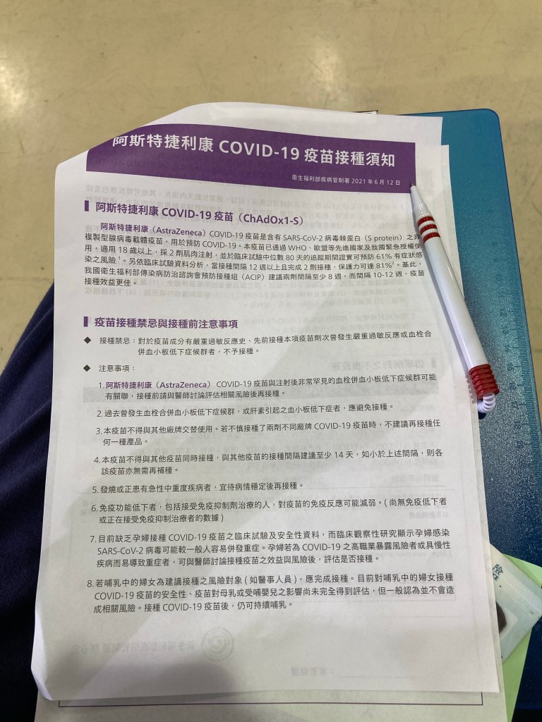 我選擇打這支疫苗,除了是有限選擇下的結果,也是因為我相信它。縱使有著相對強烈的副作用,縱使外傳的保護力不比其他疫苗來的高,但只要它能免於重症,我想就沒什麼理由不接受了。