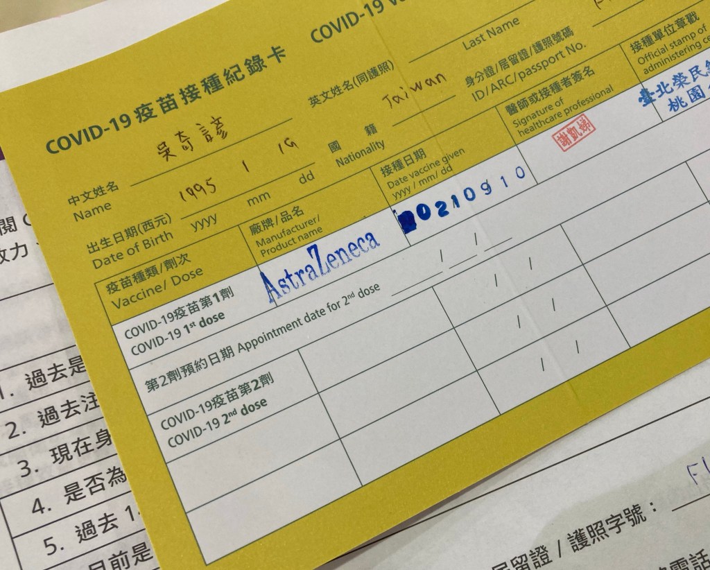 「沒有關係」工作人員示意我,於是我就照著流程,量額溫、消毒,領取接種意願書與小黃卡。