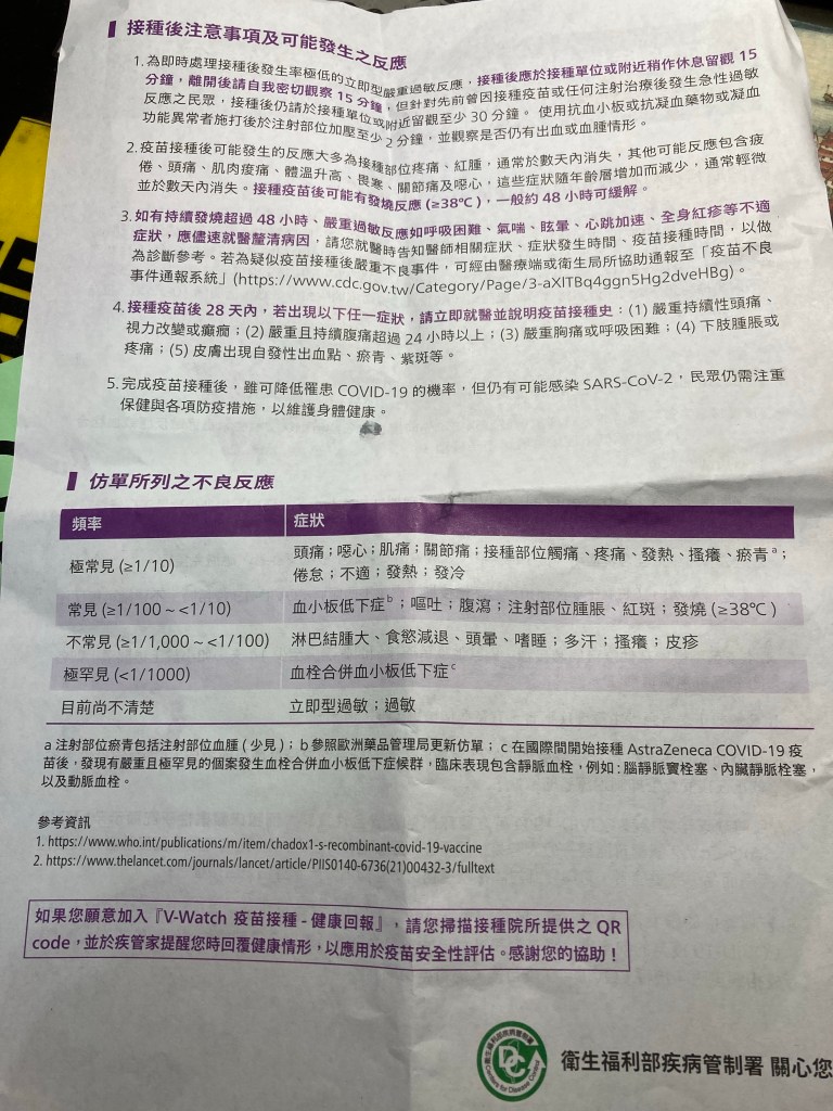 註3:#疫苗認證的年輕人,意指AZ疫苗在年輕人身上副作用明顯。常見的是頭痛、施打部位疼痛、發燒等症狀。如果施打後12-24小時內沒有出現任何不適,則可以自嘲 #疫苗認證的老人。