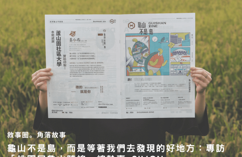 龜山不是島,而是等著我們去發現的好地方:專訪 「桃園回龜山陣線」總幹事 Simon 2022 年 2 月 14 日2022 年 3 月 20 日分類 角落。故事、敘。世界在 龜山不是島,而是等著我們去發現的好地方:專訪 「桃園回龜山陣線」總幹事 Simon 發表留言 說到龜山,你會想到什麼呢?有些人或許會想到龜山島,但對桃園人來說,龜山不是島,而是一個因為很多山,好像沒什麼的…Continue reading ➞ 龜山不是島,而是等著我們去發現的好地方:專訪 「桃園回龜山陣線」總幹事 Simon