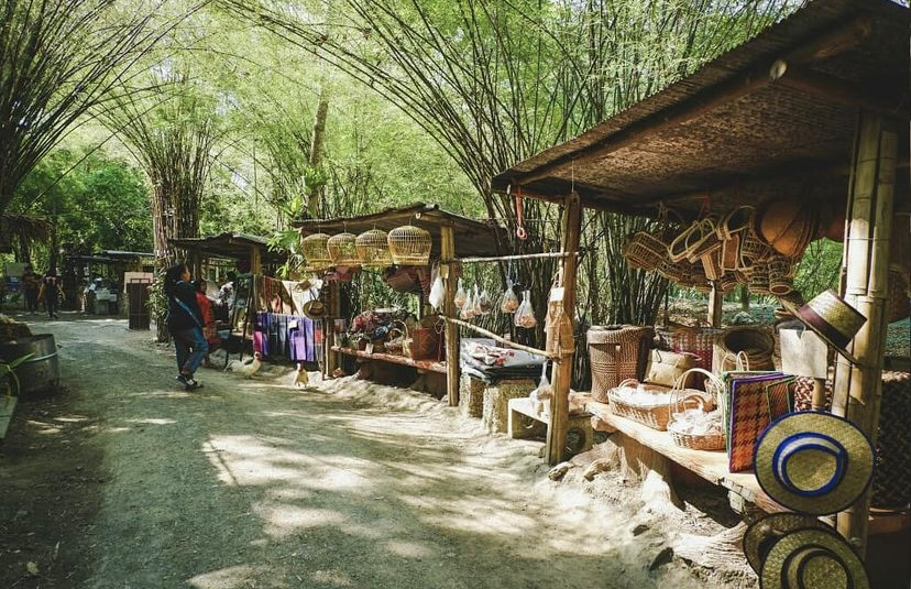 這座水上市場並不是在一條河上,而是處在有瀑布的森林內,攤販們散落於園區入口沿途,所販售的東西皆是可再生能源或環保材質製作而成,全是當地攤商販售當地才有的產品,獨具特色。