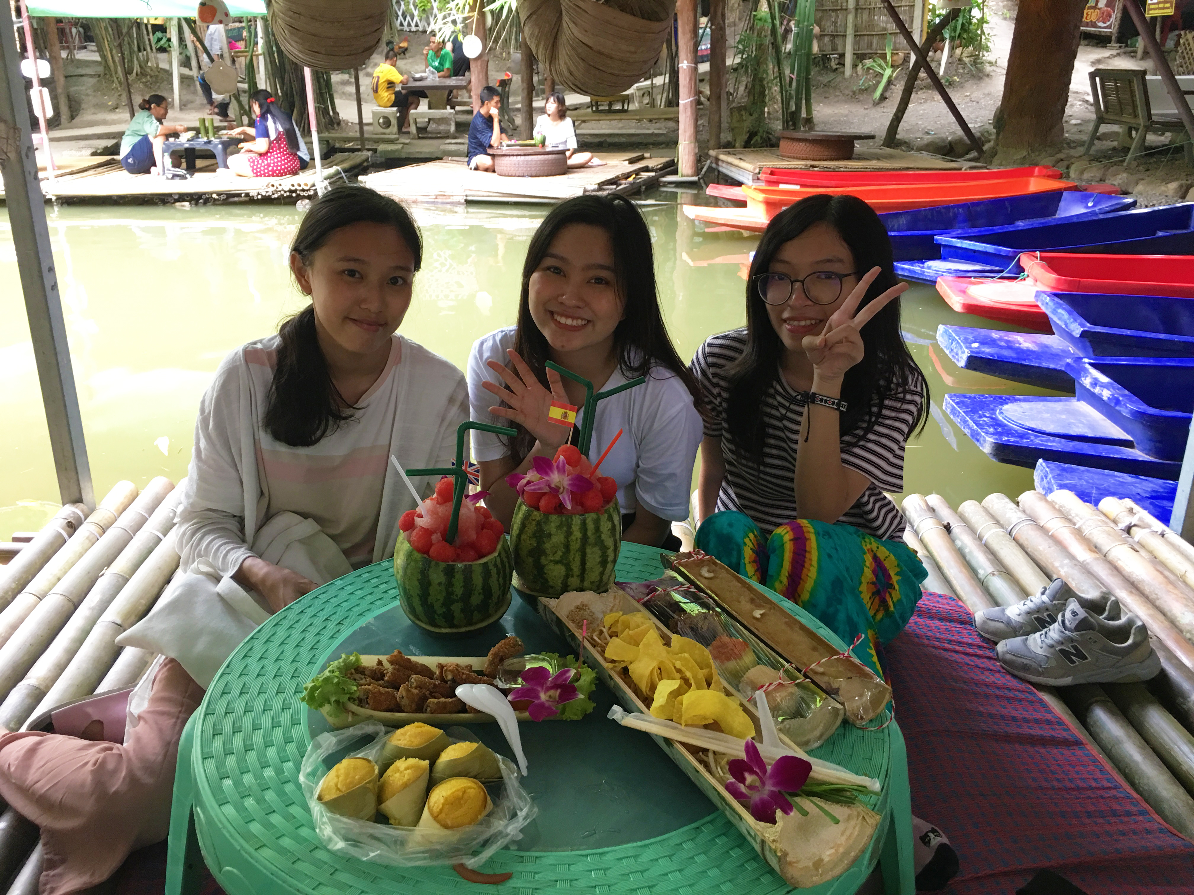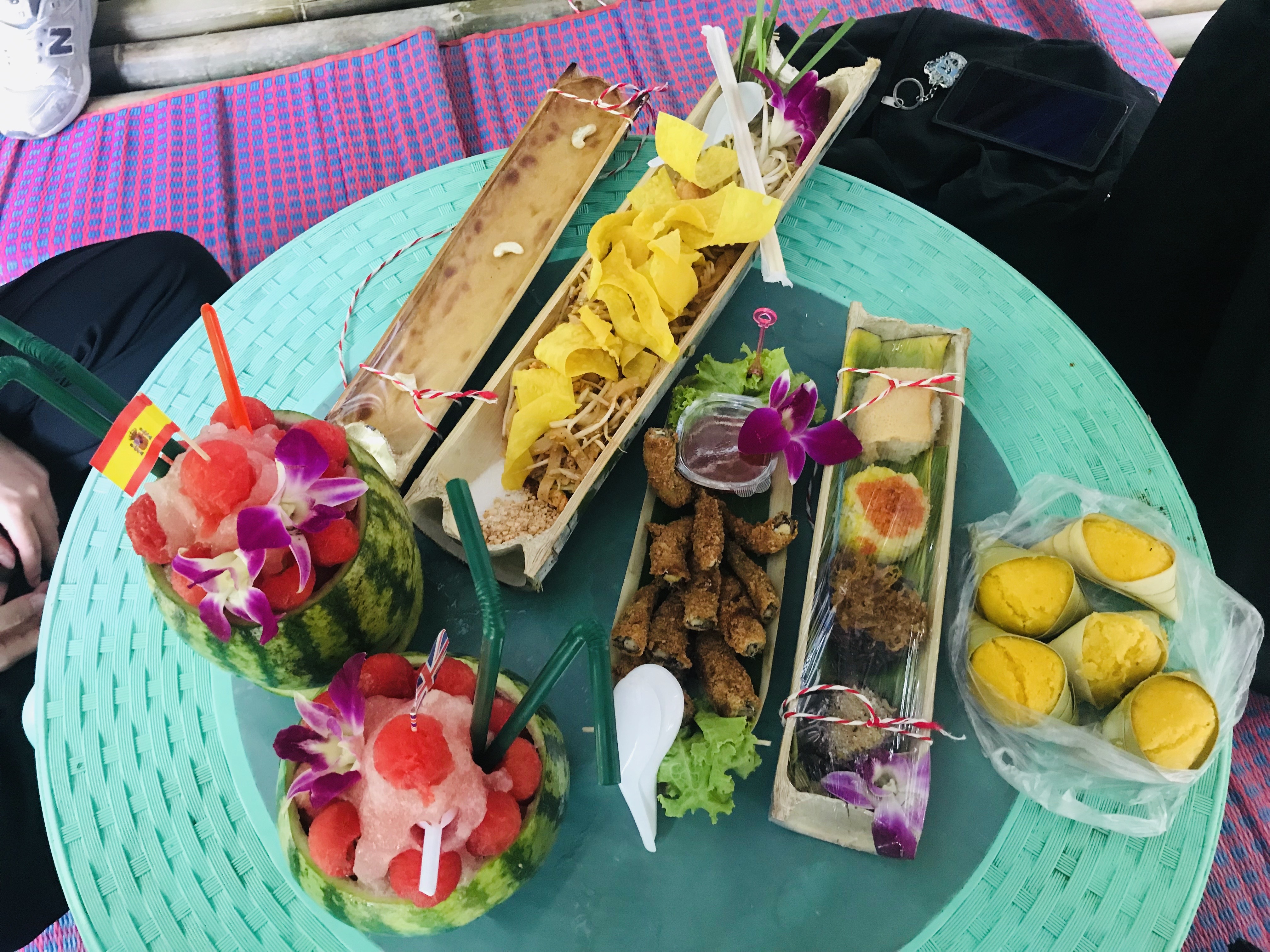 走過攤販區,看到小河,河畔的竹編休息區,則是遊客最佳的休憩處。不論要飲食、游泳、划船,在這一帶,都能享受到自然的魅力無窮與泰國的愜意生活。