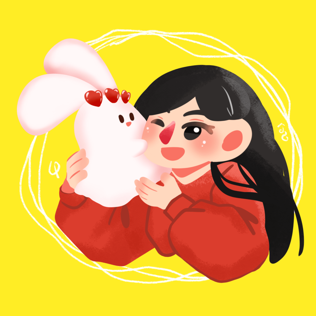 打開IG,看到Panay的版面,會注意到頭貼是一個穿著紅裙的長髮女孩,抱著一隻類似兔子的生物。這是Panay的給自己的插畫形象,紅色代表著花蓮阿美族文化的色彩,而那隻兔子,其實是包有草莓內餡的麻糬,頭上三顆愛心代表Panay的三次耐心。